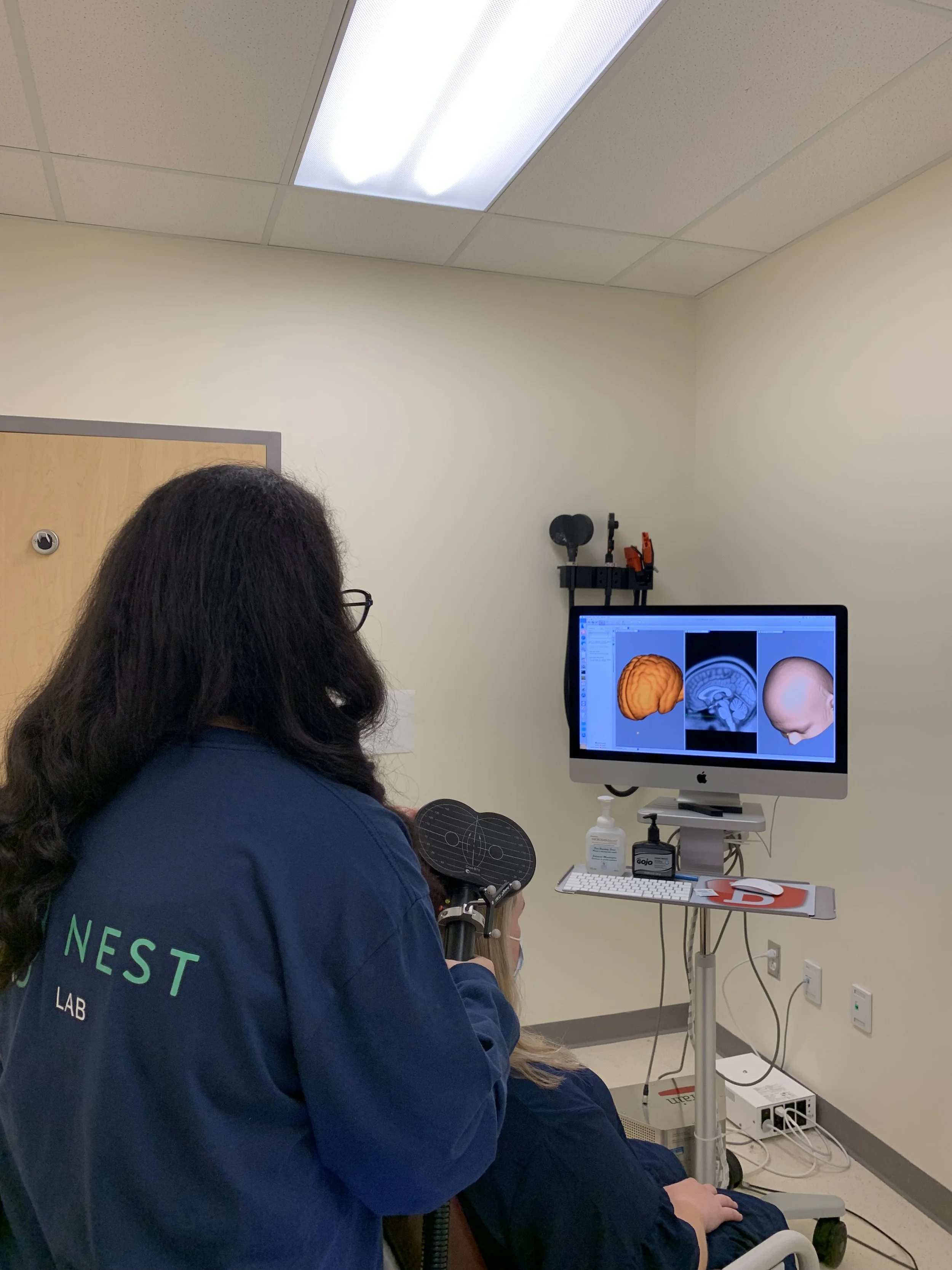 A neuronavigation system is a tool that can be used to precisely target a region of the brain. This system enables to reach specific brain targets either based on the MRI image of the person’s brain or on a standard human brain model.