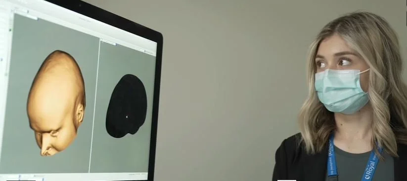 After that, the research team member uses a pointer. A pointer is just like a pencil with 3D trackers on it, and that can be used to draw specific spots (landmarks) on the person’s brain model, by gently laying over their head for periods of one to two seconds per landmark. Then, the computer combines the specific shape of the person’s brain (obtained with landmarks) with the brain modelization (either obtained with MRI image or using a standard brain model).